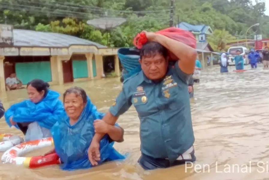 TNI AL, Tapanuli Tengah – Banjir akibat hujan deras yang mengguyur Kabupaten Tapanuli Tengah (Tapteng), Selasa (25/11), memaksa prajurit TNI AL Lanal Sibolga bergerak cepat melakukan evakuasi warga di berbagai titik terdampak.