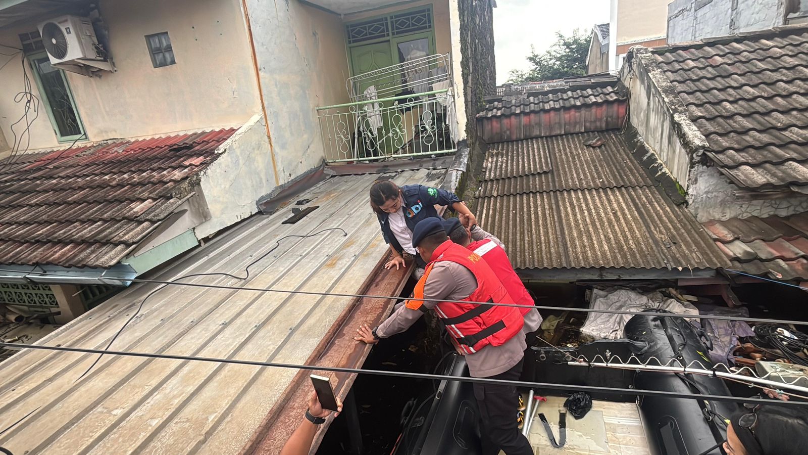 Tangerang – Tim SAR Batalyon C Pelopor Satuan Brimob Polda Metro Jaya bergerak cepat merespons banjir di Perumahan Priuk Damai, Tangerang, Banten.