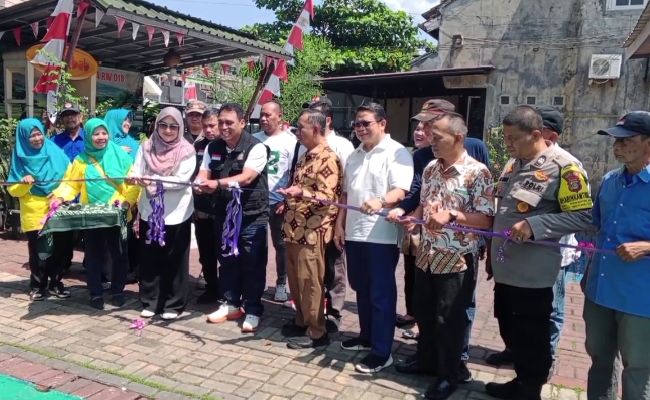 Dengan penuh semangat, mereka merapikan rumput, menyapu halaman, hingga memperbaiki lingkungan sekitar TMP.