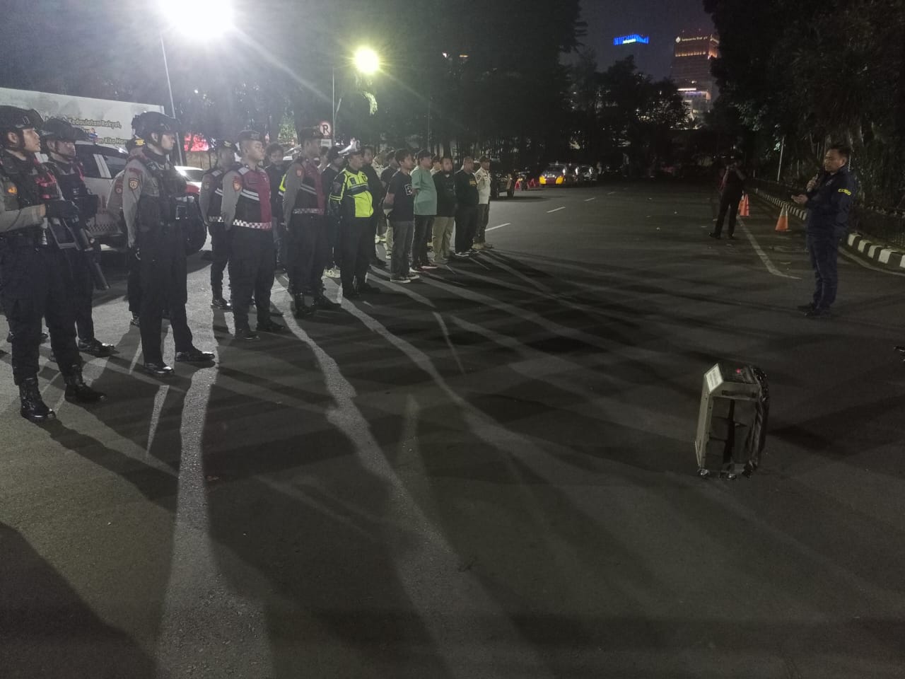 “Malam ini kami melaksanakan patroli skala besar bersama Satpol PP dan jajaran Polda Metro Jaya. Tujuannya untuk memastikan situasi di wilayah Jakarta tetap aman dan kondusif,” ujar AKBP Herman saat memimpin apel sebelum keberangkatan.