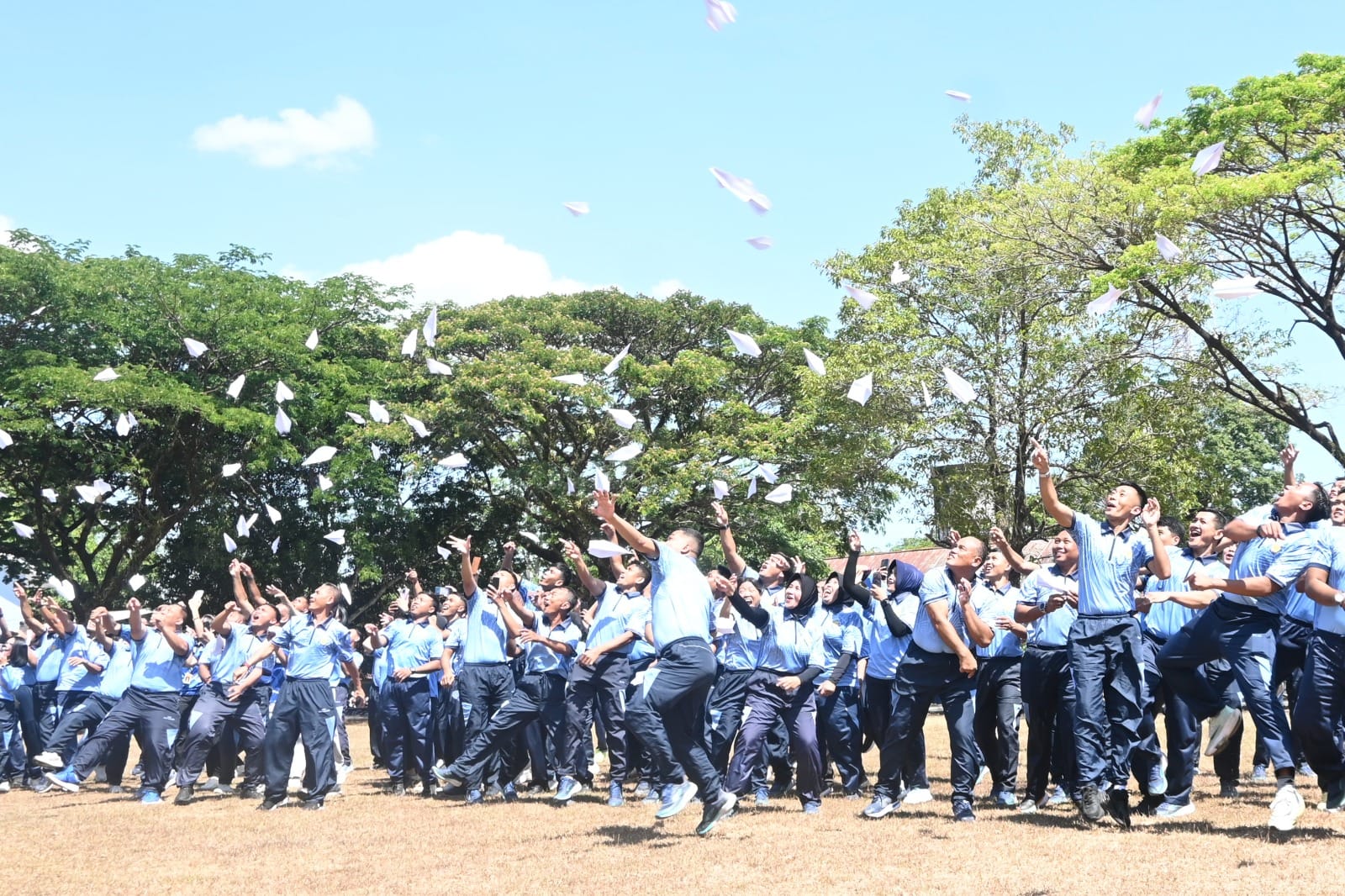 Aksi Terbangkan Pesawat Kertas Meriahkan Dirgantara Fair 2025 di Lanud Sultan Hasanuddin