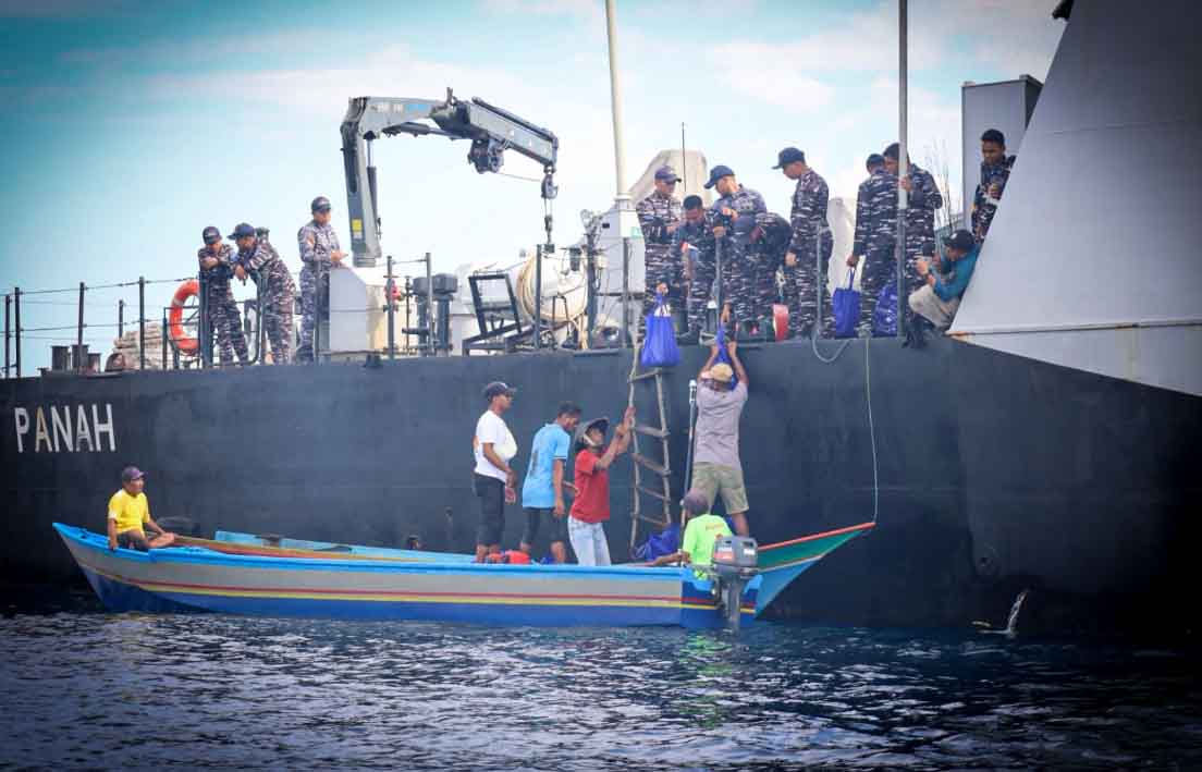Kodaeral IX Salurkan Ratusan Paket Sembako kepada Nelayan di Tengah Laut Desa Tial